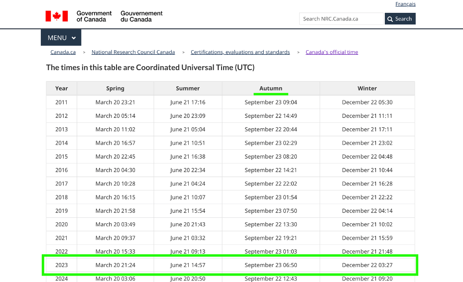 +) 아래 링크를 통해 연도별로 캐나다의 사계절이 언제 정확히(!) 시작되는지 알아볼 수 있어요 :)