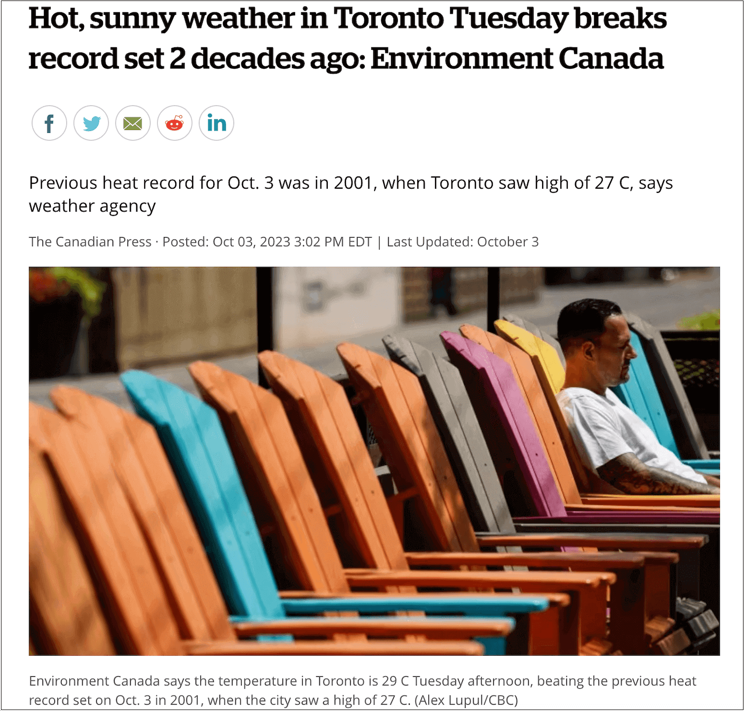 아래의 기사를 찾아보니 특히나 오늘 체감온도가 33도로, 지구온난화로 2001년 이후 가장 뜨거운 10월을 기록했다고 해요.
