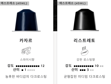 저는 네스프레소 공식 홈페이지에서 한꺼번에 캡슐커피를 주문하는 편입니다. 특히 이벤트가 있을 땐, 아마존을 살펴봐도 공식홈페이지가 낫더라고요. 신 맛을 즐기지 않는 저로서는 항상 쟁이는 커피가 몇 가지 있고, 그 외에는 홈페이지에 적혀있는 커피맛 설명을 보고 즉흥적으로 한 줄씩 장바구니에 담습니다. 맛보고 맛이 좋으면 추가 주문을 하는 식이에요.
